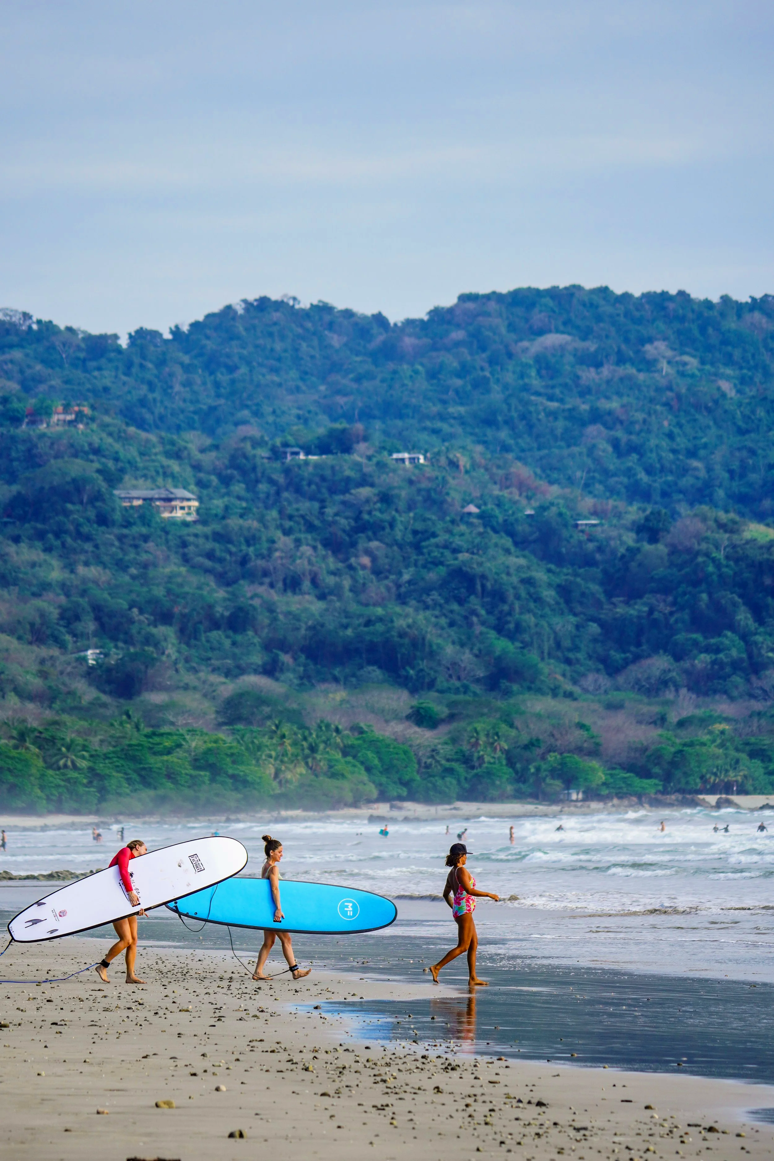 For your Santa Teresa surf sessions, remember: strong sun protection and hydration are crucial under that intense sun. Comfortable, form-fitting surf wear allows for best movement. We provide rash guards for lessons, but feel free to use your own. Don’t forget to bring water.